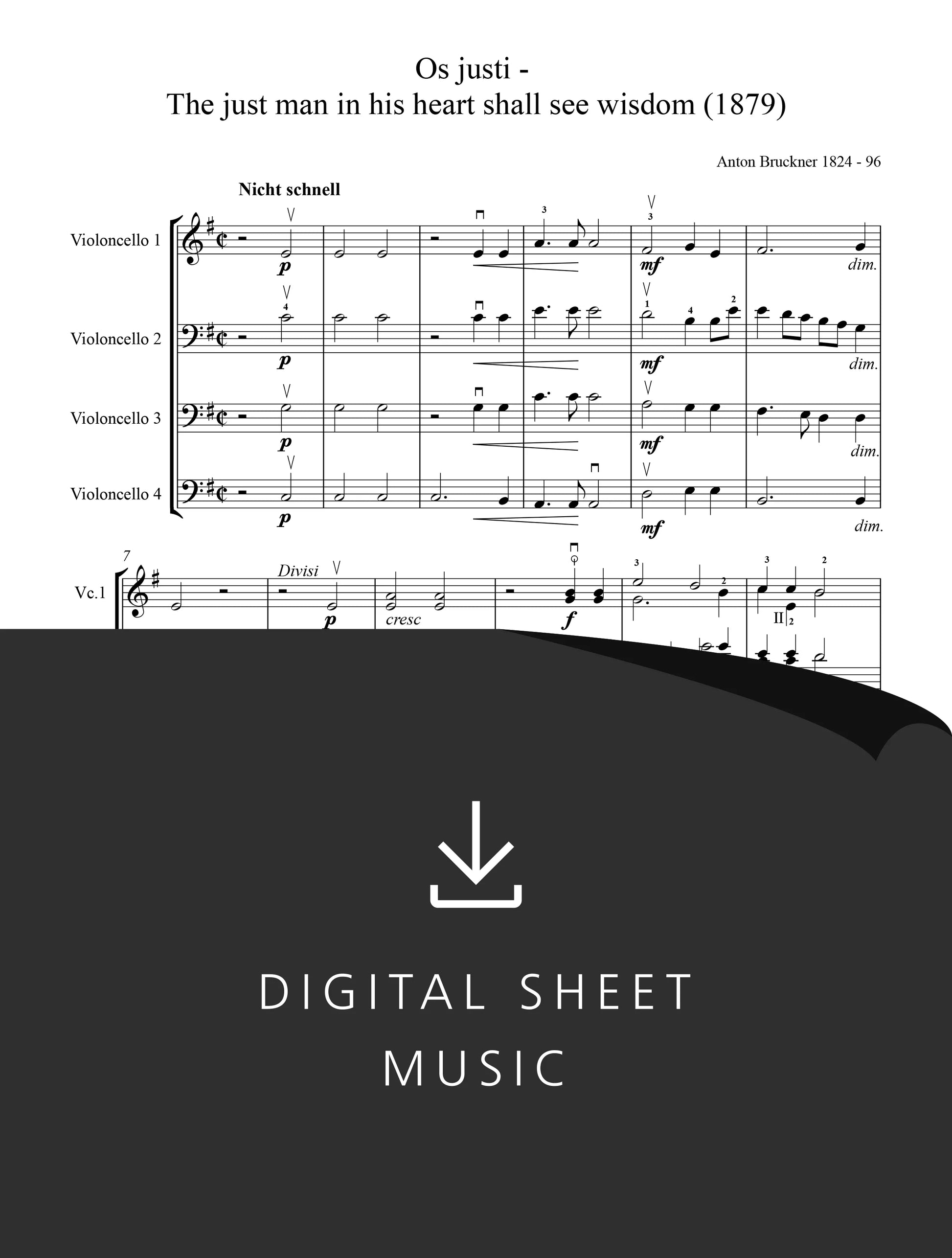 This motet was influenced by the statuesque beauty of Palestrina’s music. It is written in 4 parts but needs 8 cellos. You will need some experienced players on parts 1 and 2.